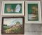 Lotto composto da un dipinto su tavola raffigurante un paesaggio montano e due tecniche miste raffiguranti galli e palme, autori e misure differenti, in cornici (gravi difetti)