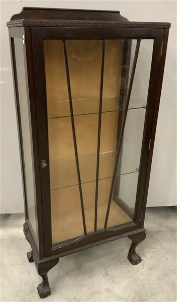 Lotto 1790 | Piccola vetrina ad uno sportello con ripiani in vetro e piedi a zampa ferina (c