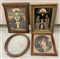 Lotto composto da un'incisione e un verre-peint a soggetto religioso, un'incisione con scena galante, in cornici, uniti a una cornice ovale (difetti e mancanze)