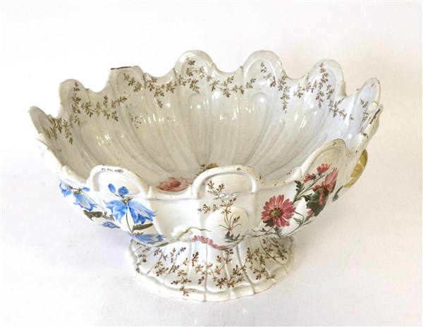 Manifattura di Bassano, inizio secolo XX. Grande centrotavola con bordo argenta
