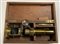 Micorscopio in ottone in scatola in legno con accessori. (h cm 24) (difetti)