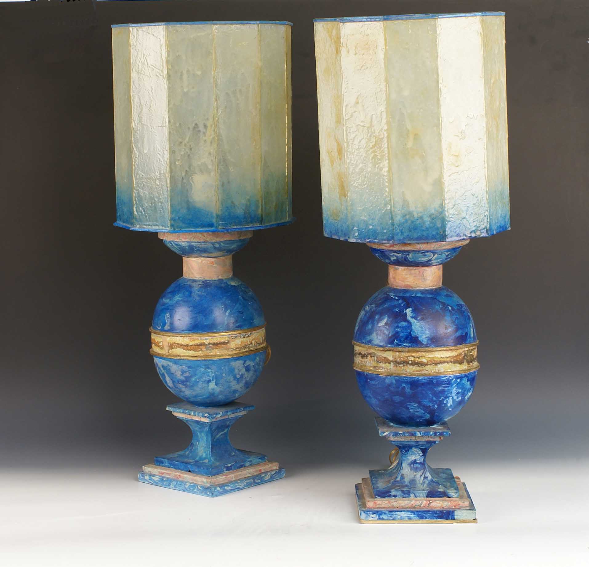Lotto 781 | PARTICOLARE COPPIA DI LAMPADE IN SCAGLIOLA Dipinta in policromia con paralumi...