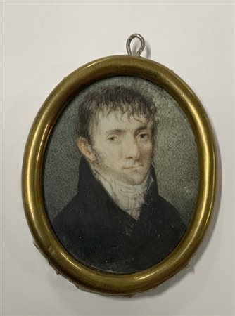 Scuola del sec. XIX "Gentiluomo" miniatura ovale (cm 6x5) in cornice (difetti)