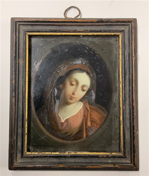 Scuola del sec. XVIII. Verre peint raffigurante la Vergine (cm 10x8) in cornice