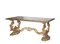 TAVOLINO BASSO IN LEGNO PARZIALMENTE LACCATO vecchia manifattura Piano rettangolare in marmo breccia verde poggiante su sostegno intagliato a motivi di volute Dim. 54x123x62 cm.
