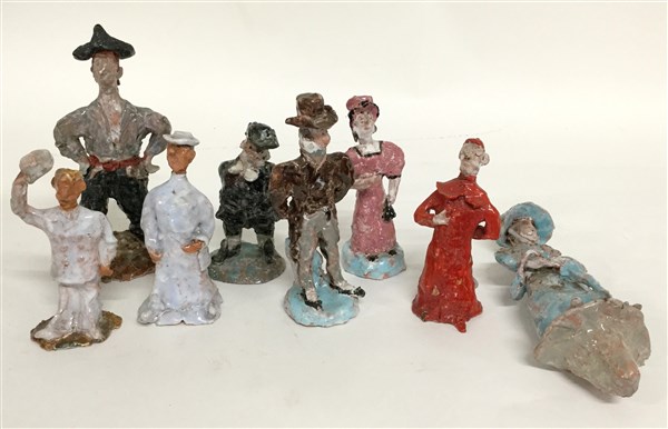 Miniati "Figure" gruppo di otto sculture in ceramica policroma (difetti e rottu