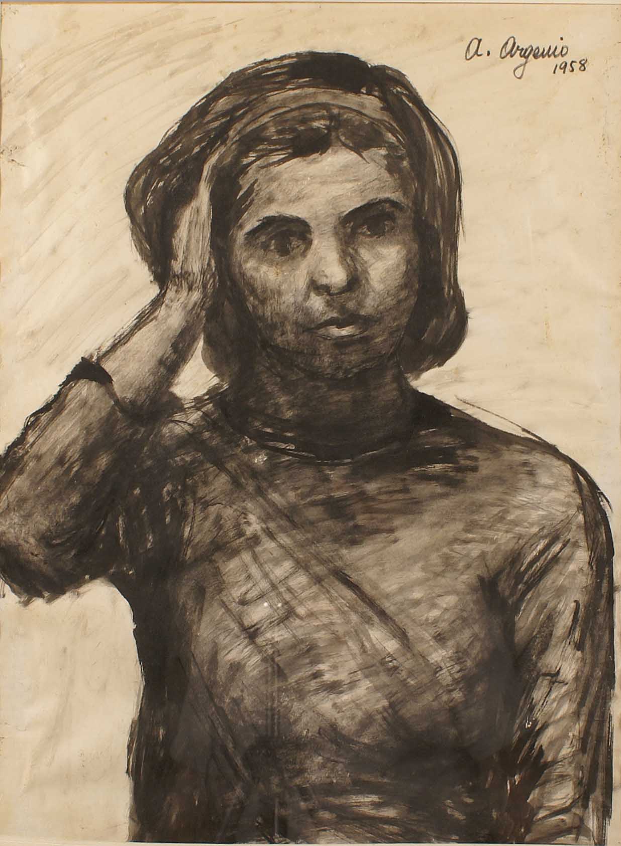 A. ARGENIO XX Sec. "Ritratto di donna", tecnica mista su carta, firmato e datato 1958 in alto a destra, entro cornice Dim. 70x50 cm.