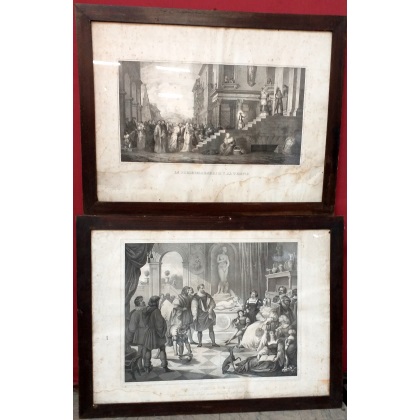 Lotto di due stampe del sec. XIX raffiguranti un episodio della vita di Michela