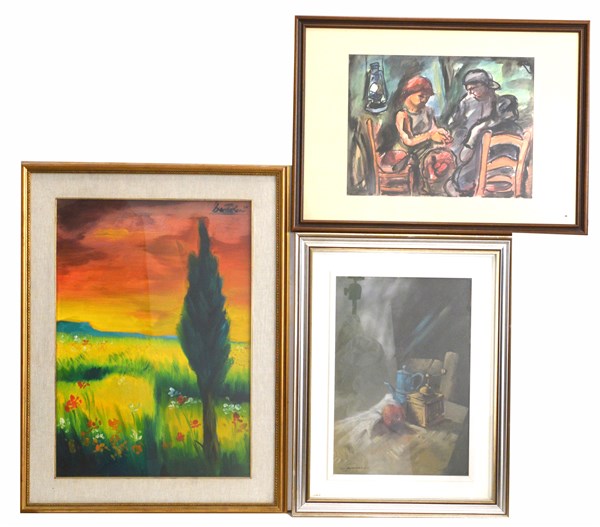 Lotto composto da tre dipinti di autori diversi. In cornici (difetti)