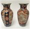 Coppia di vasi in porcellana con decoro in stile imari nei toni del rosso e del blu (h cm 29) (vecchi restauri)