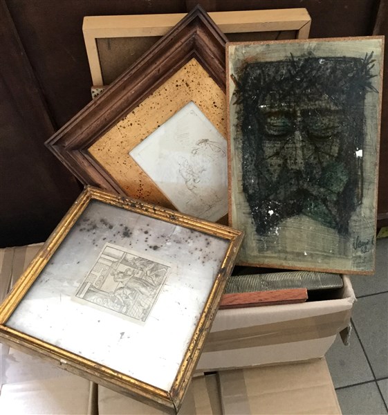 Cartone contenente numerose incisioni e dipinti di diversi autori ed epoche (difetti)