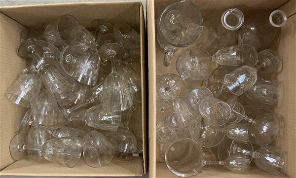 Lotto 2073 | Due cartoni contenenti parte di servizio di bicchieri in cristallo molato compo