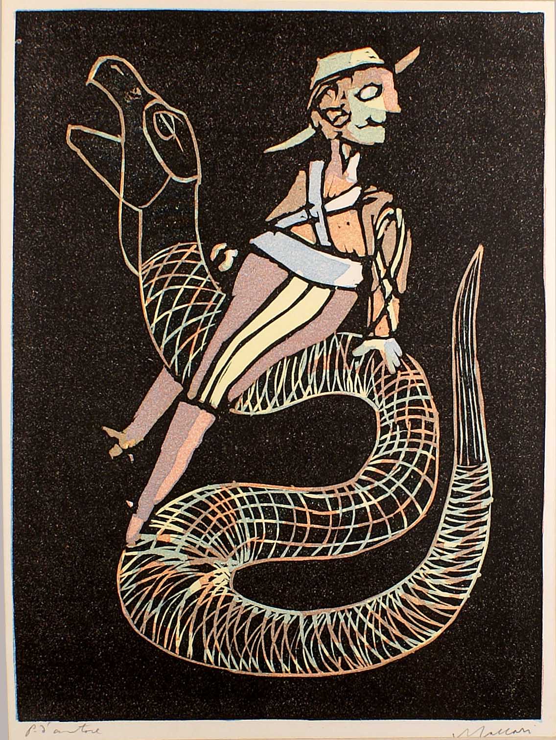 MINO MACCARI Siena 1898-Roma 1989 "Senza titolo", litografia p.a., firmata in...