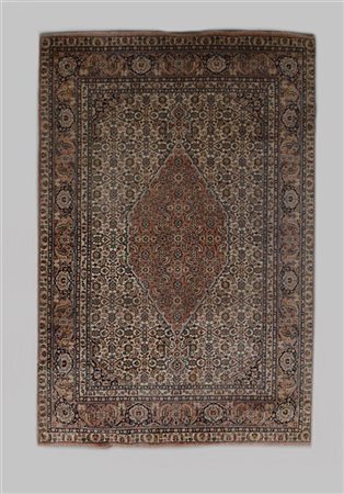 Decoro con medaglione rosa su fondo bianco decorati con motivo Herati (cm 250x163) (difetti)
