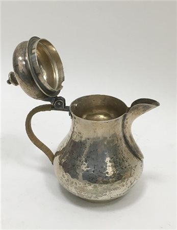 Cuccuma in argento con presa a trottola. Punzoni San Marco (g 230) (h. cm 13)