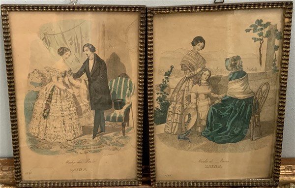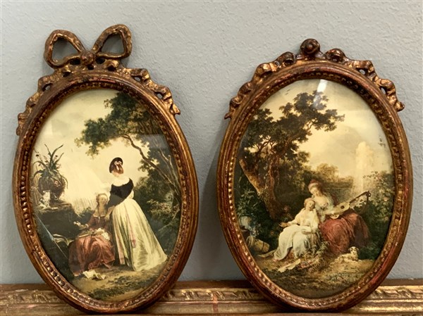 Lotto di quattro piccole stampe in cornici dorate, misure diverse (lievi difetti)