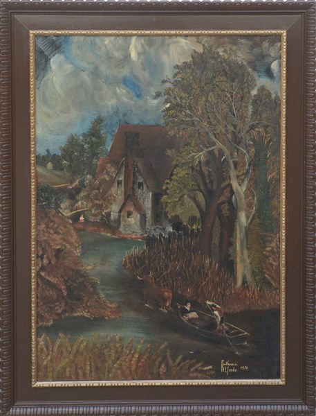 Alfredo Giovannini "Paesaggio fluviale" 1970 olio su tela (cm 86x60) firmato e
