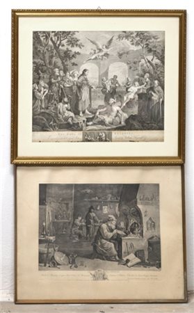 Lotto di due incisioni del secolo XIX di soggettie misure diverse, in cornici (