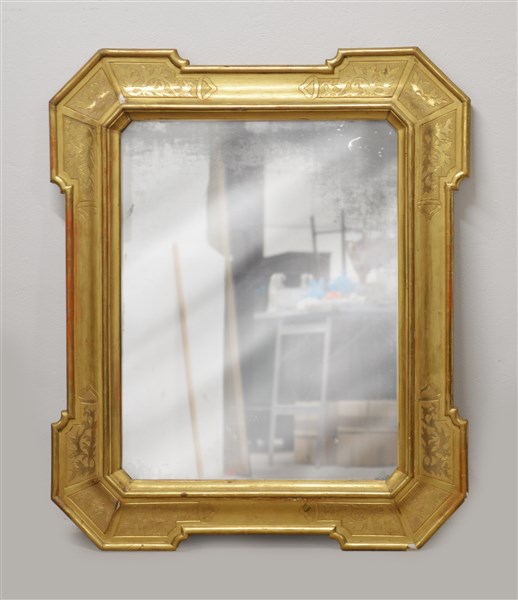 Specchiera a vassoio in legno dorato e bulinato a motivi vegetali, fine del secolo XIX (cm 123x1039 (difetti e mancanze)