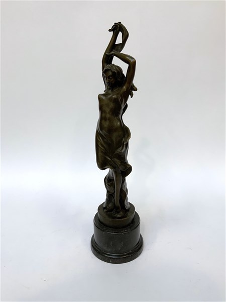 Ignoto, ''nudo di donna danzante'', scultura in bronzo su base circolare in marmo (h cm 52), (lievi difetti)