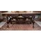 Tavolo scrittoio in noce con due cassetti sottopiano, sostegni a lira e traverse intagliate e sagomate (cm 174x84x87) (difetti)