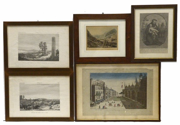 Lotto composto da cinque incisioni di diversa epoca in cornici (difetti)