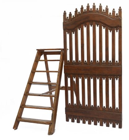 Lotto composto da una scala rustica e un vecchio cancello ad un'anta in legno (