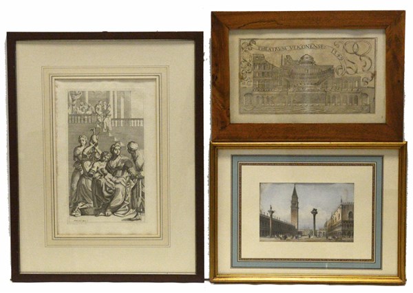 Lotto composto da tre incisioni di diverse epoche e autori. In cornici (difetti