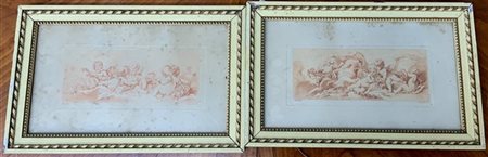 Coppia di incisioni a sanguigna da Boucher raffiguranti giochi di putti (cm 18x