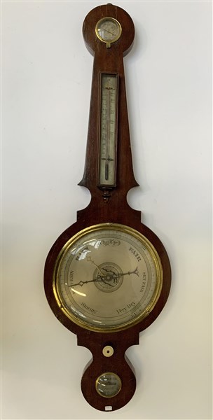 Barometro con termometro e idrometro da parete con cassa in legno (h cm 100) (difetti)