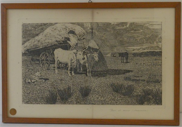 Giovanni Fattori "Bovi al carro" acquaforte, tiratura per il centenario (mm 240x