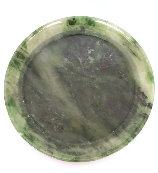 Piatto dalla forma circolare in pietra dura color verde spiancio. Cina, sec. XX (diam. cm 20)