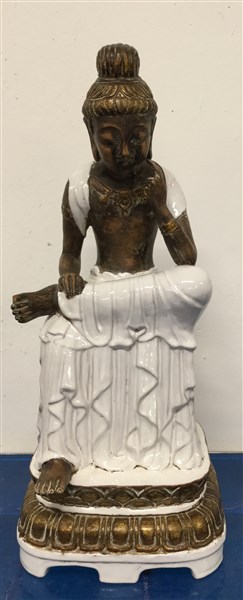 Manifattura orientale "Buddha pensoso" scultura in ceramica parzialmente dorata
