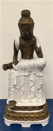 Manifattura orientale "Buddha pensoso" scultura in ceramica parzialmente dorata (h cm 51)