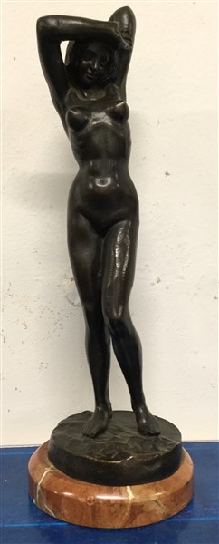 Scultura in bronzo raffigurante un nudo di donna su base in marmo. Reca ai pied