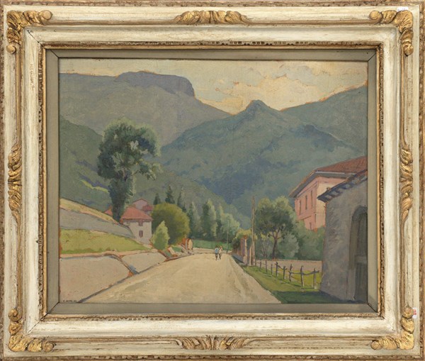 Erme Ripa "Verso Introbio, Valsassina" 1944 olio su compensato (cm 37x46) firma