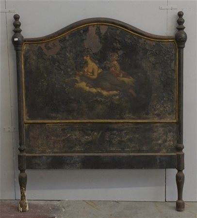 Pediera in ghisa con pannello dipinto a scena classica. Secolo XIX (cm 100x120) (difetti e restauri)