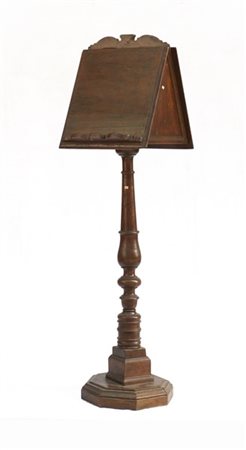 Leggio da terra doppio in legno con fusto a colonna tornita, base ottagonale (h