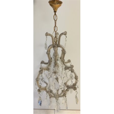 Lampadario ad una luce con pendagli in cristallo a gocce (h cm 87)(difetti)