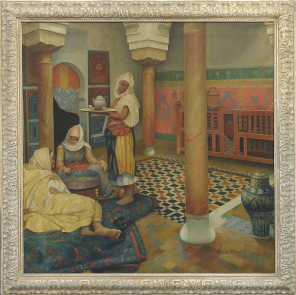 N. Caranini "Interno arabo" olio su tela (cm 100x100) firmato in basso a destra, in cornice (difetti)