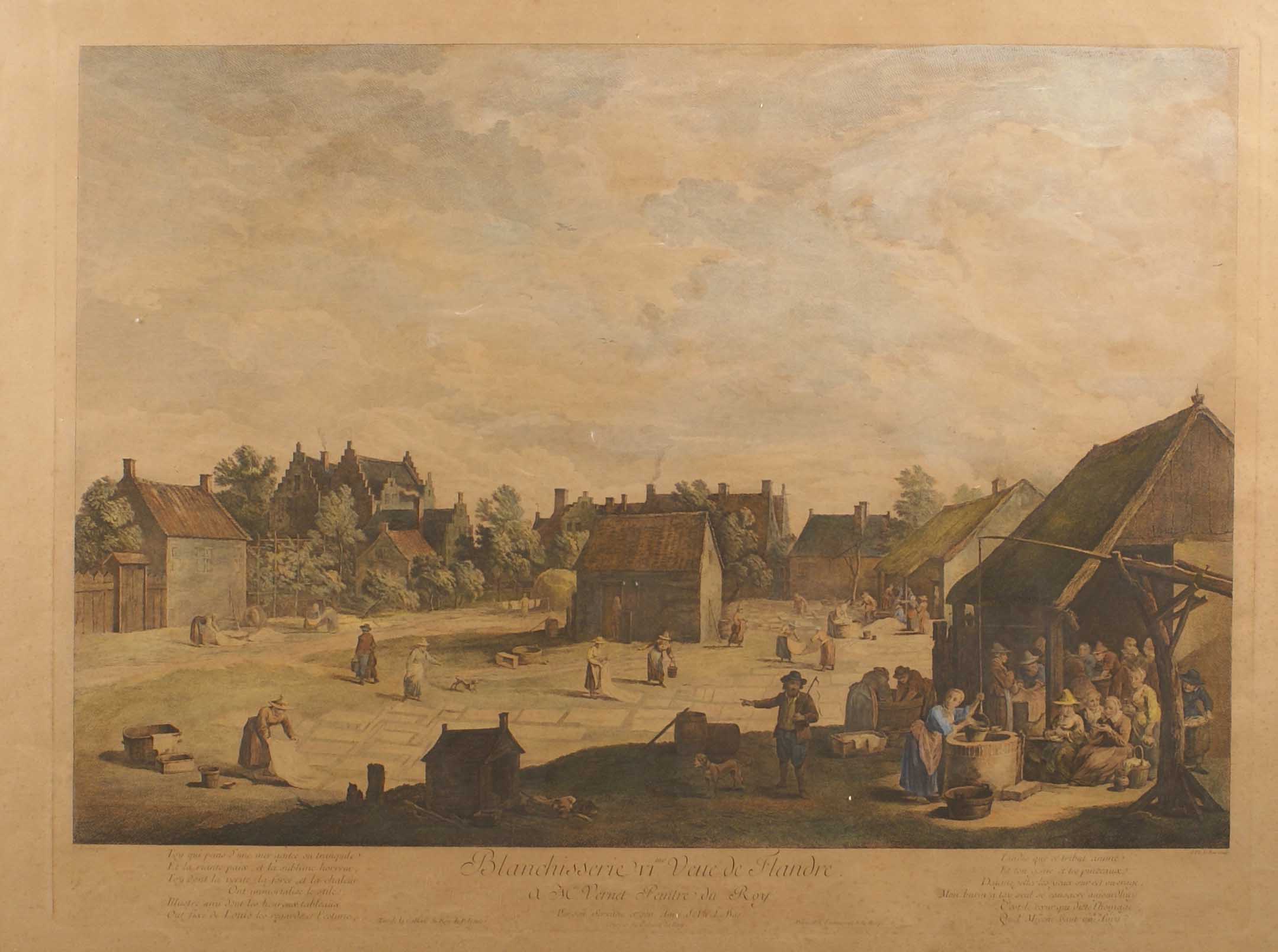 SCUOLA FRANCESE del XIX Sec. "Scena di villaggio" incisione a colori entro...