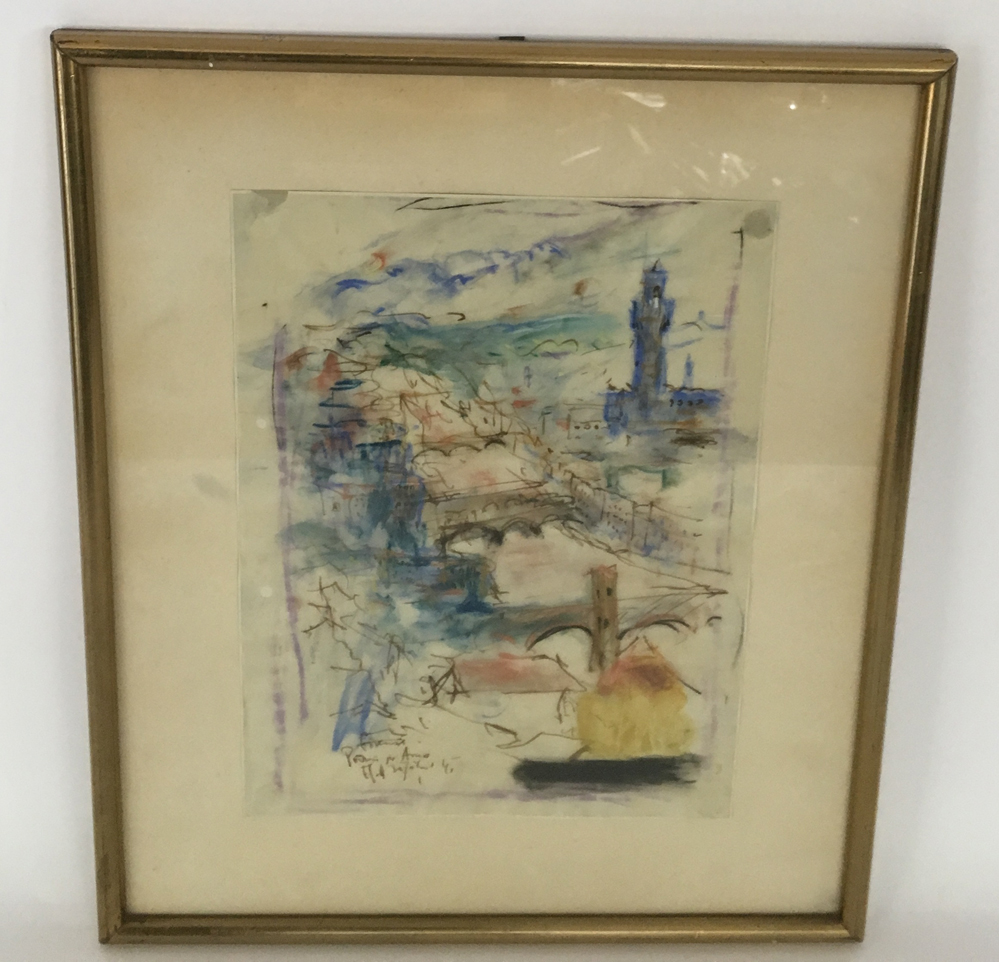 Firma indecifrata "Scorcio di Firenze" tecnica mista su carta applicata su cart