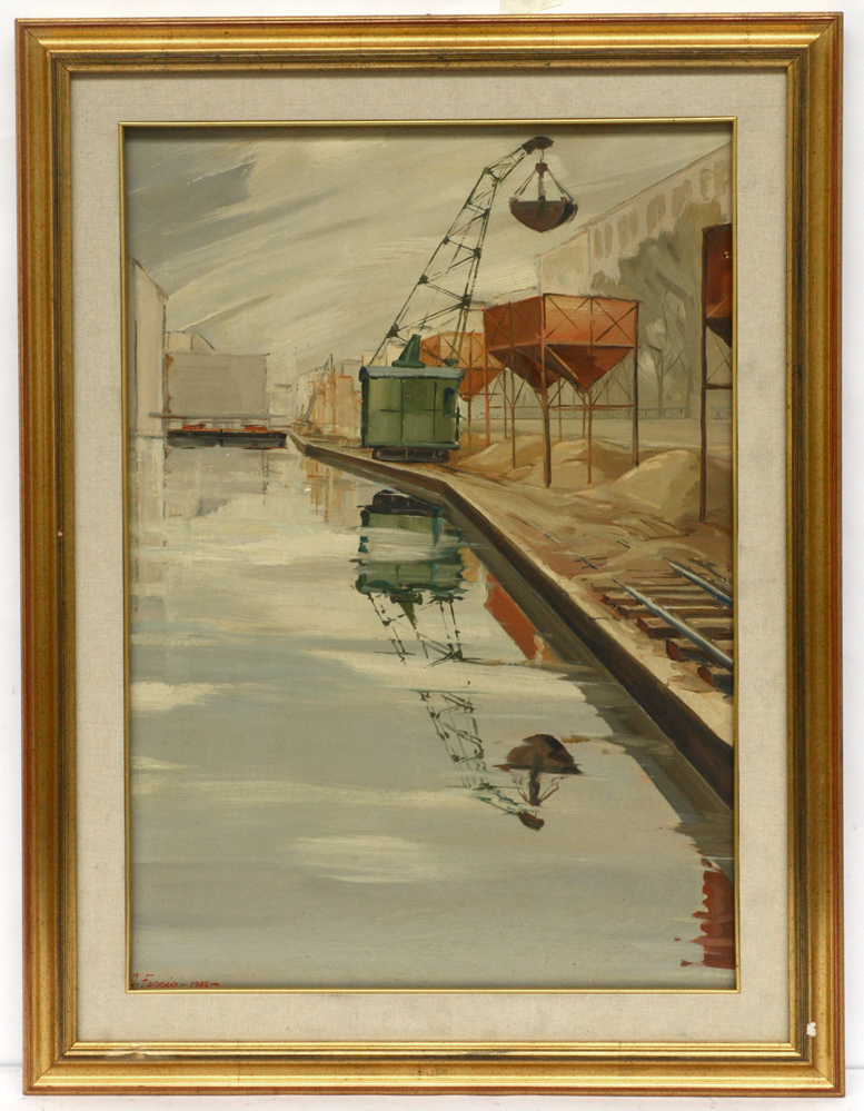 O. Faccio "Darsena, Milano" 1980, olio su tela (cm 70x50) firmato e datato in ba