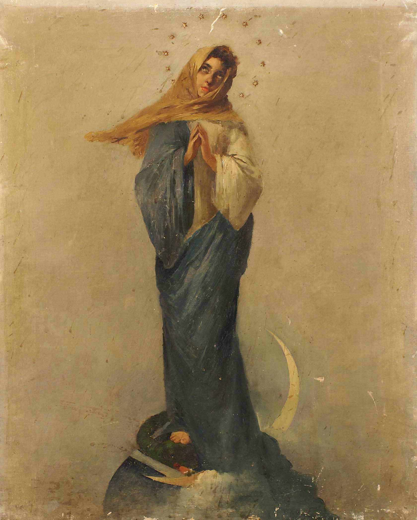 SCUOLA ITALIANA fine del XIX Sec. "Madonna di Guadalupe", olio su tela Dim. 64x46 cm.