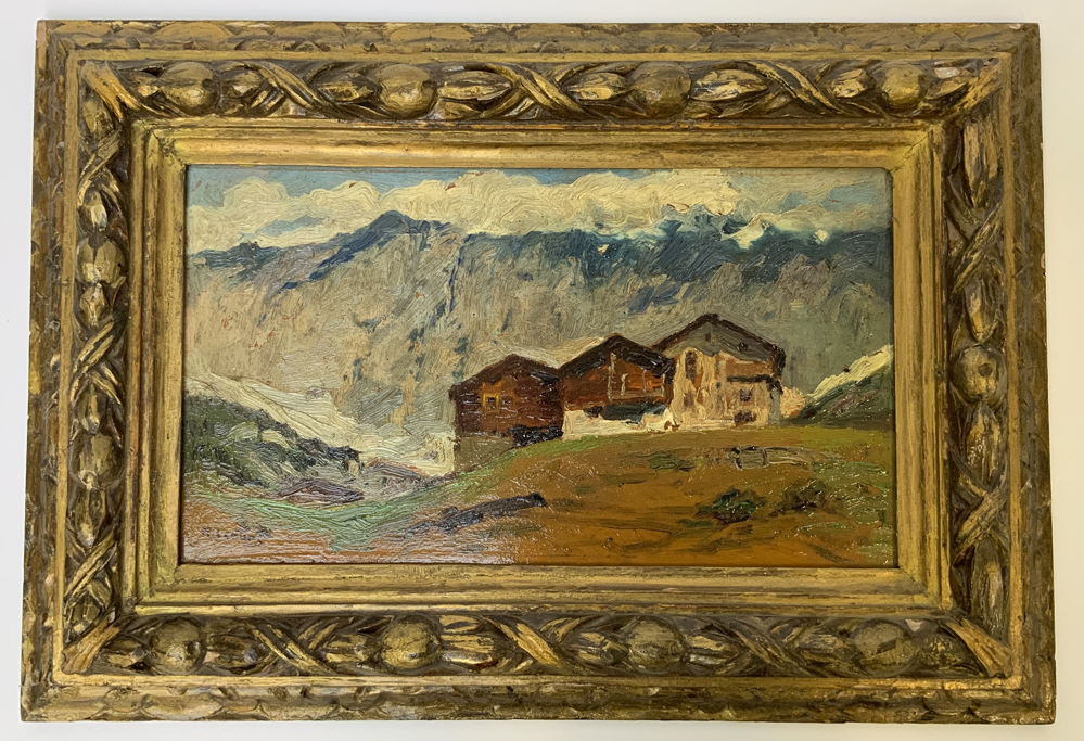 "Bormio" olio su tavoletta (cm 18x31), firmato in basso a sinistra, in cornice