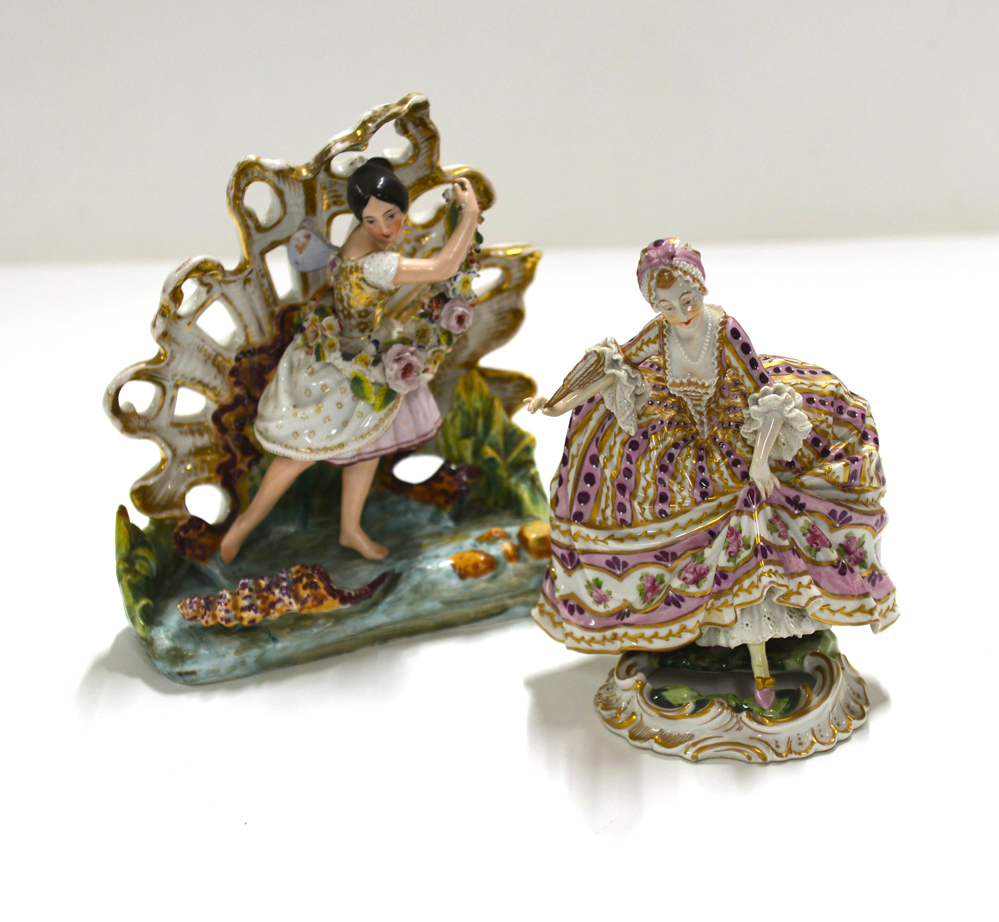 Lotto composto da una scilturina in porcellana di Sevres raffigurante Gentildonna ed una di altra manifattura raffigurante fanciulla (h max cm 23) (difetti, restauri e mancanze)
