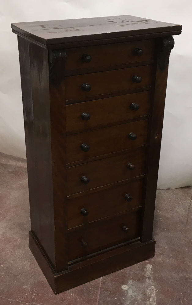 Settimanale con montanti intagliati allattacco e pomoli dei cassetti torniti (