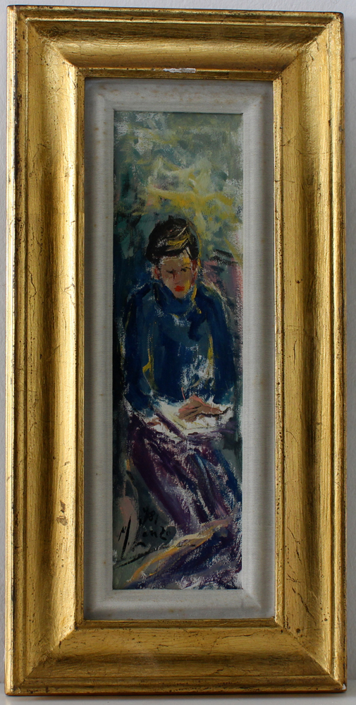 M. Lanzo "Ragazzo che legge" olio su tela cm 50x14 firmato e datato 1981 in bas