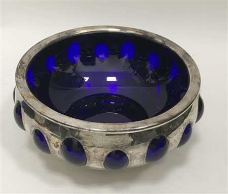 Ciotola in vetro rivestita in argento. Punzoni Brandimarte, Firenze. In custodia (diam. cm 17)