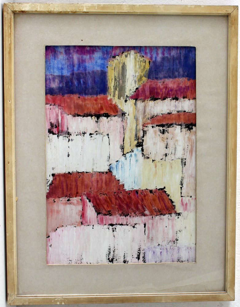 Firma indecifrata "Tetti" 1976 tecnica mista su carta cm 49x33 firmato e datato